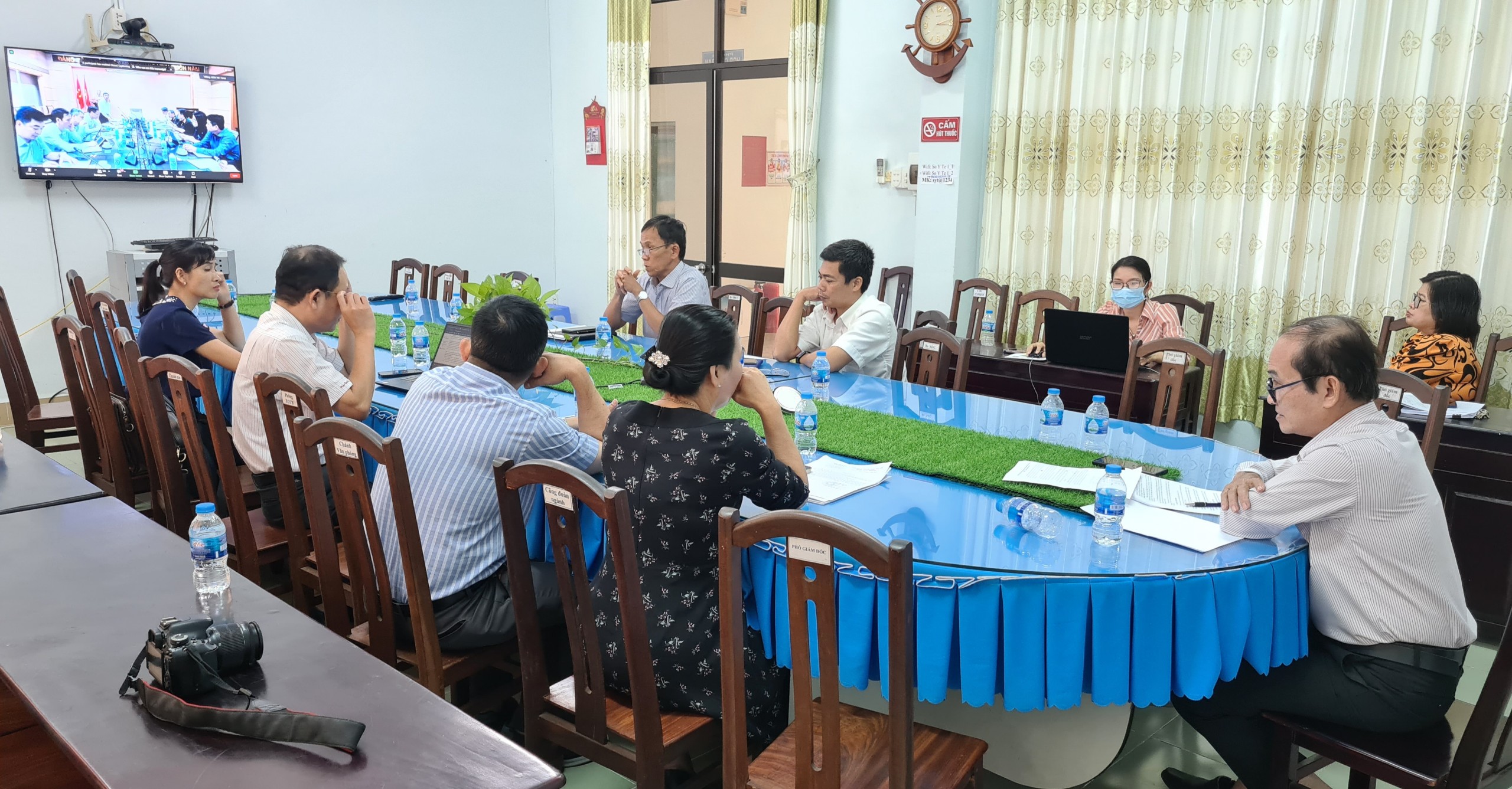 Đầu cầu trực tuyến tại Bến Tre do Phó giám đốc Sở Y tế Nguyễn Văn Oanh chủ trì cùng các đơn vị trực thuộc liên quan