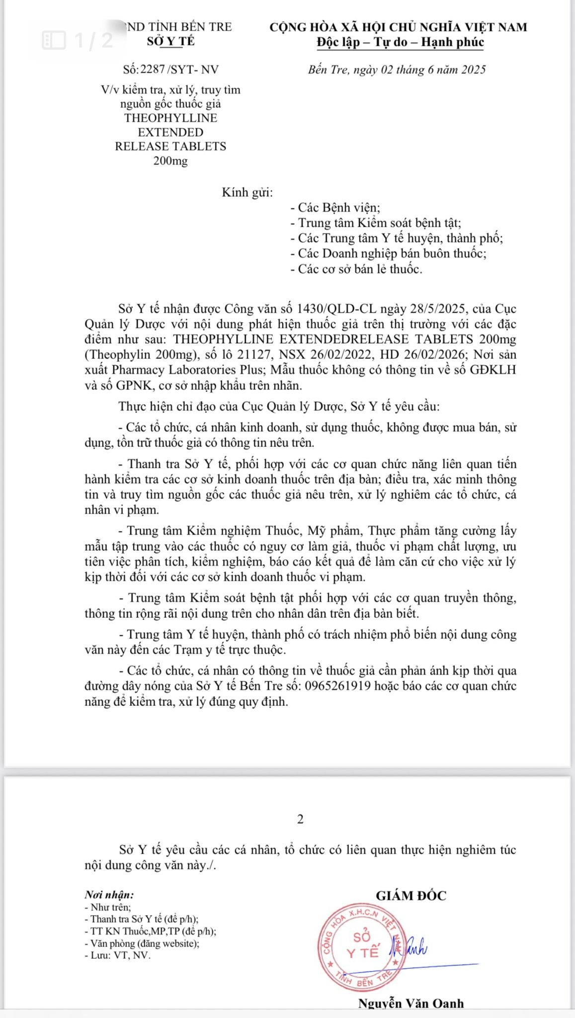 - Các tổ chức, cá nhân có thông tin về thuốc giả cần phản ánh kịp thời qua đường dây nóng của Sở Y tế Bến Tre số: 0965261919 hoặc báo các cơ quan chức năng để kiểm tra, xử lý đúng quy định.
